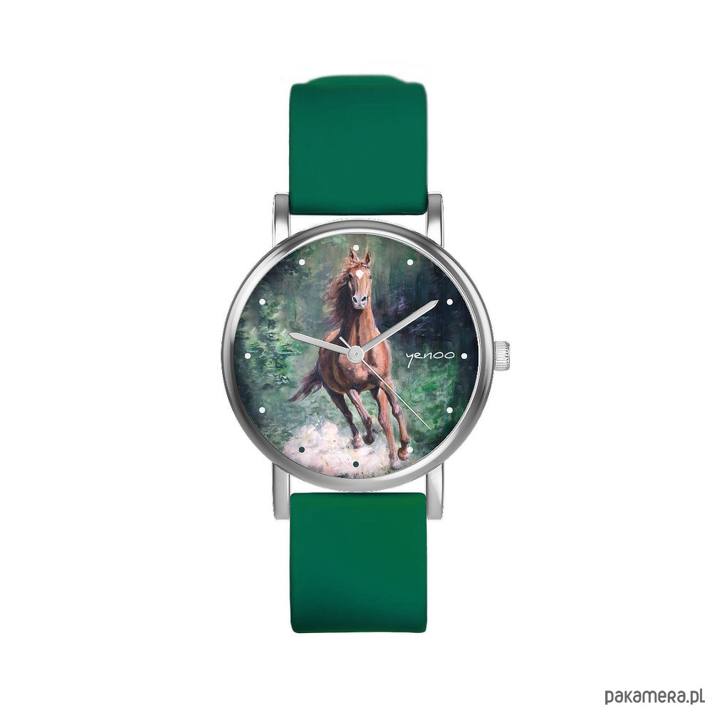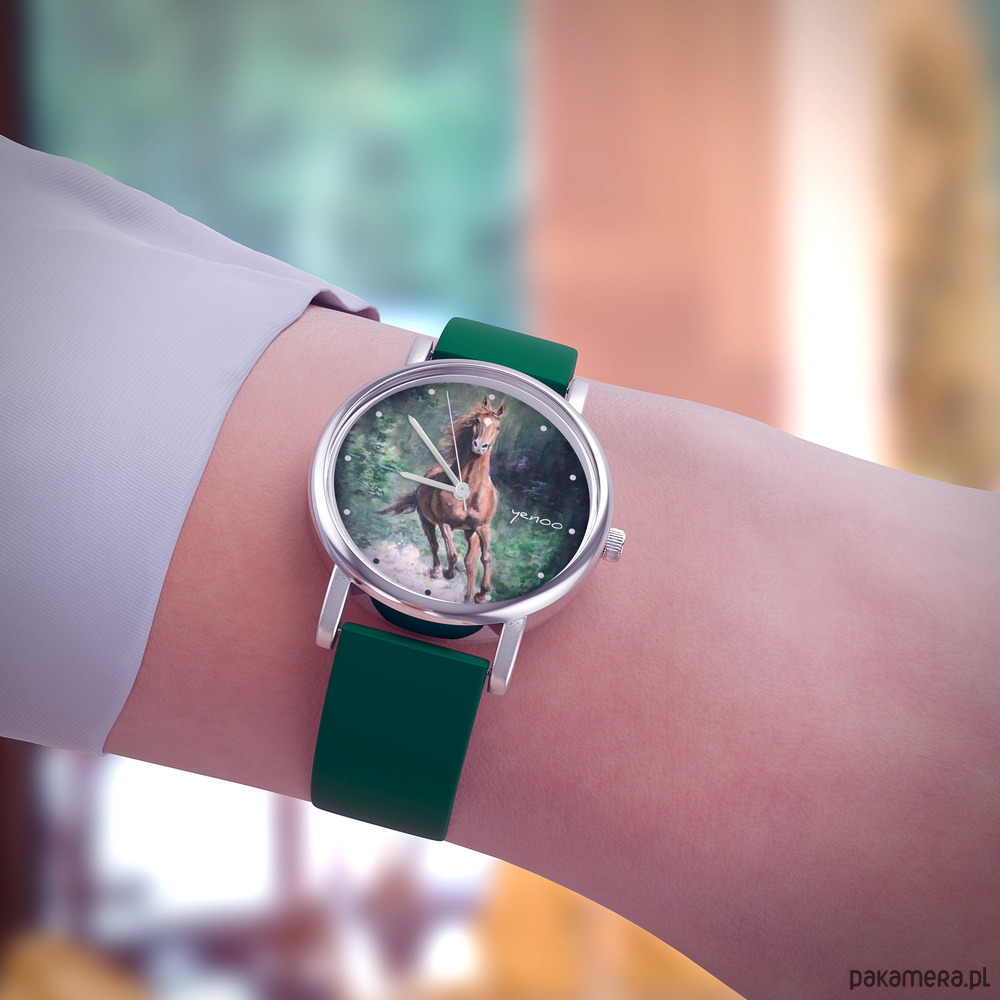 Zegarek mały - Koń, las - silikonowy, zielony