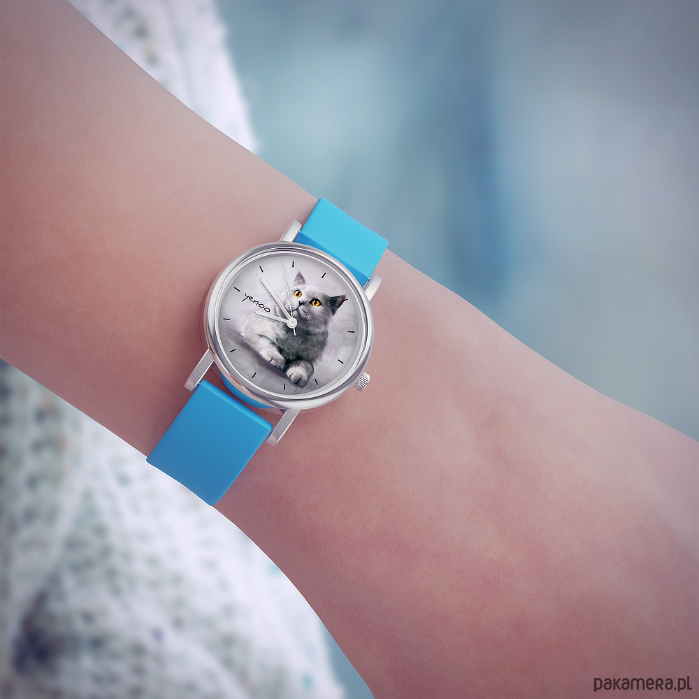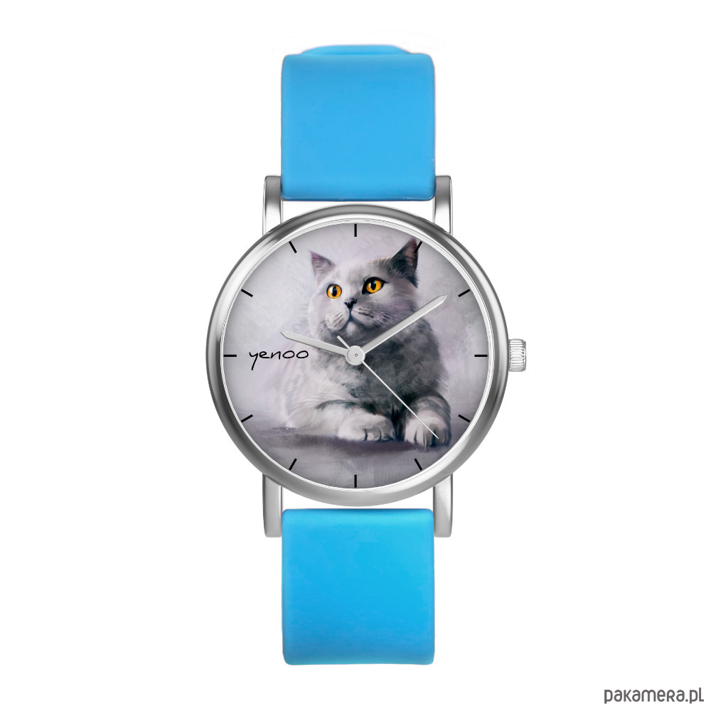Zegarek mały - Kot brytyjski - silikonowy, niebieski