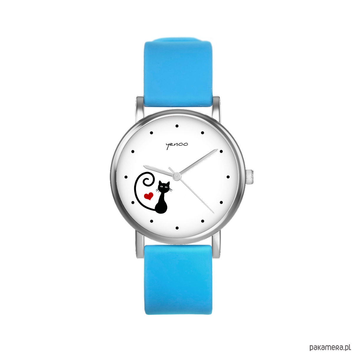 Zegarek mały - Kotek, serce - silikonowy, niebieski