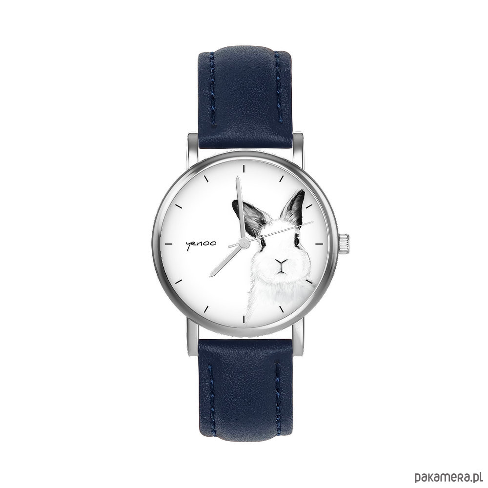 Zegarek mały - Królik - skórzany, granatowy