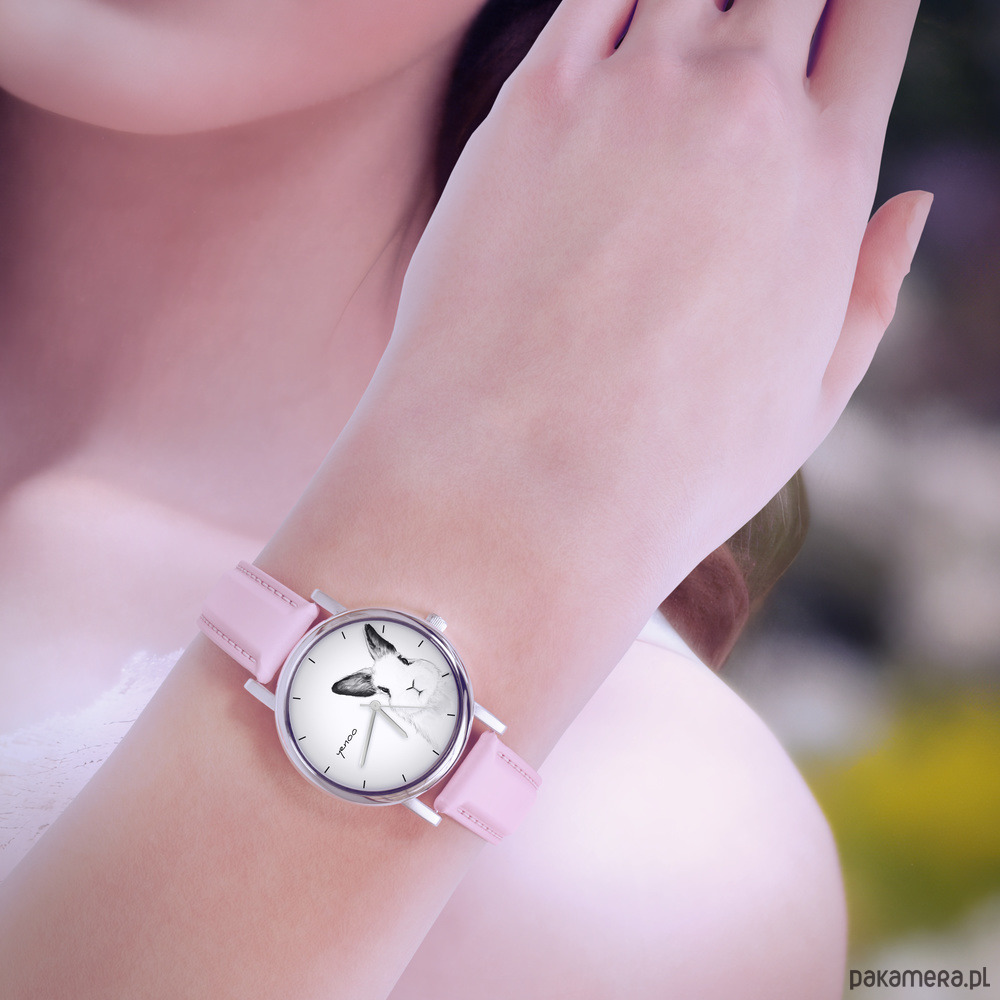 Zegarek mały - Królik - skórzany, pudrowy róż