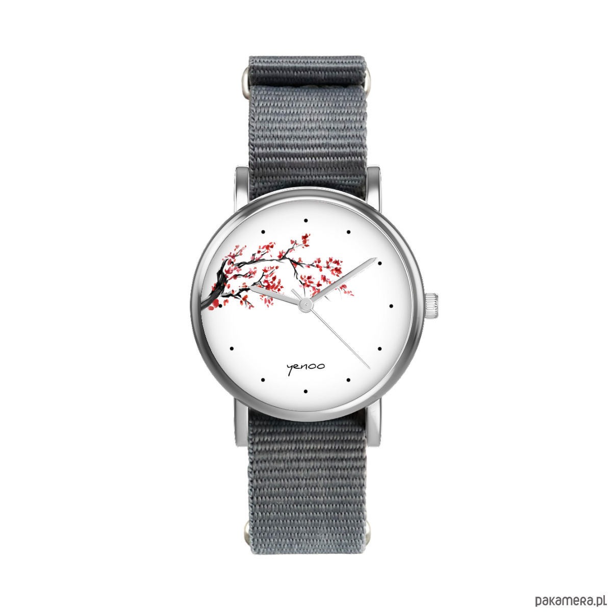 Zegarek mały - Kwiat wiśni - nylonowy, szary