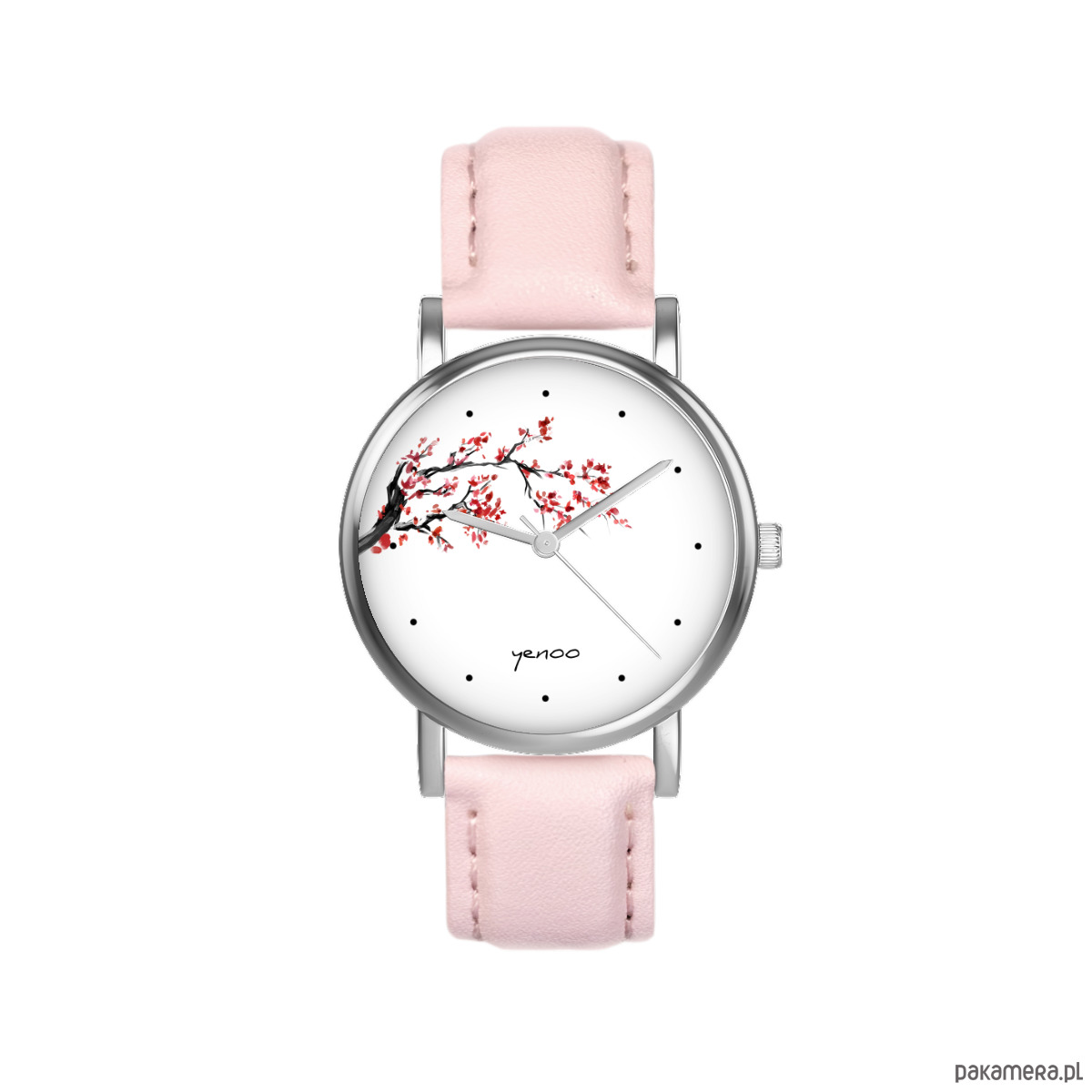 Zegarek mały - Kwiat wiśni - skórzany, pudrowy róż