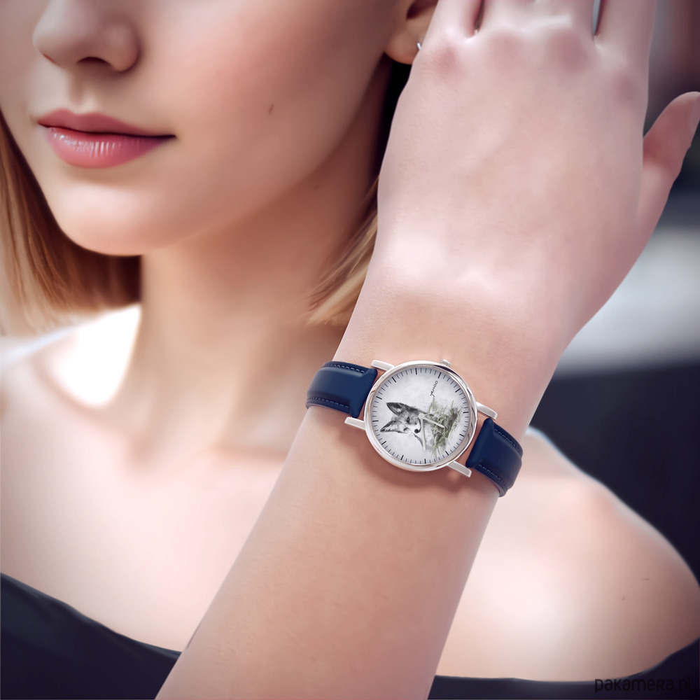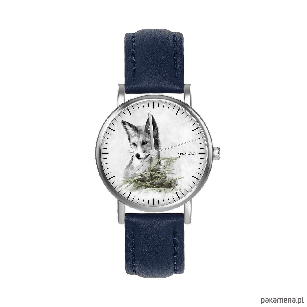 Zegarek mały - Lis - skórzany, granatowy