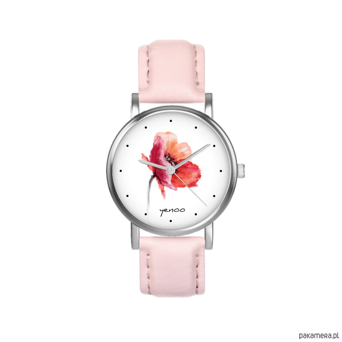 Zegarek mały - Mak - skórzany, pudrowy róż
