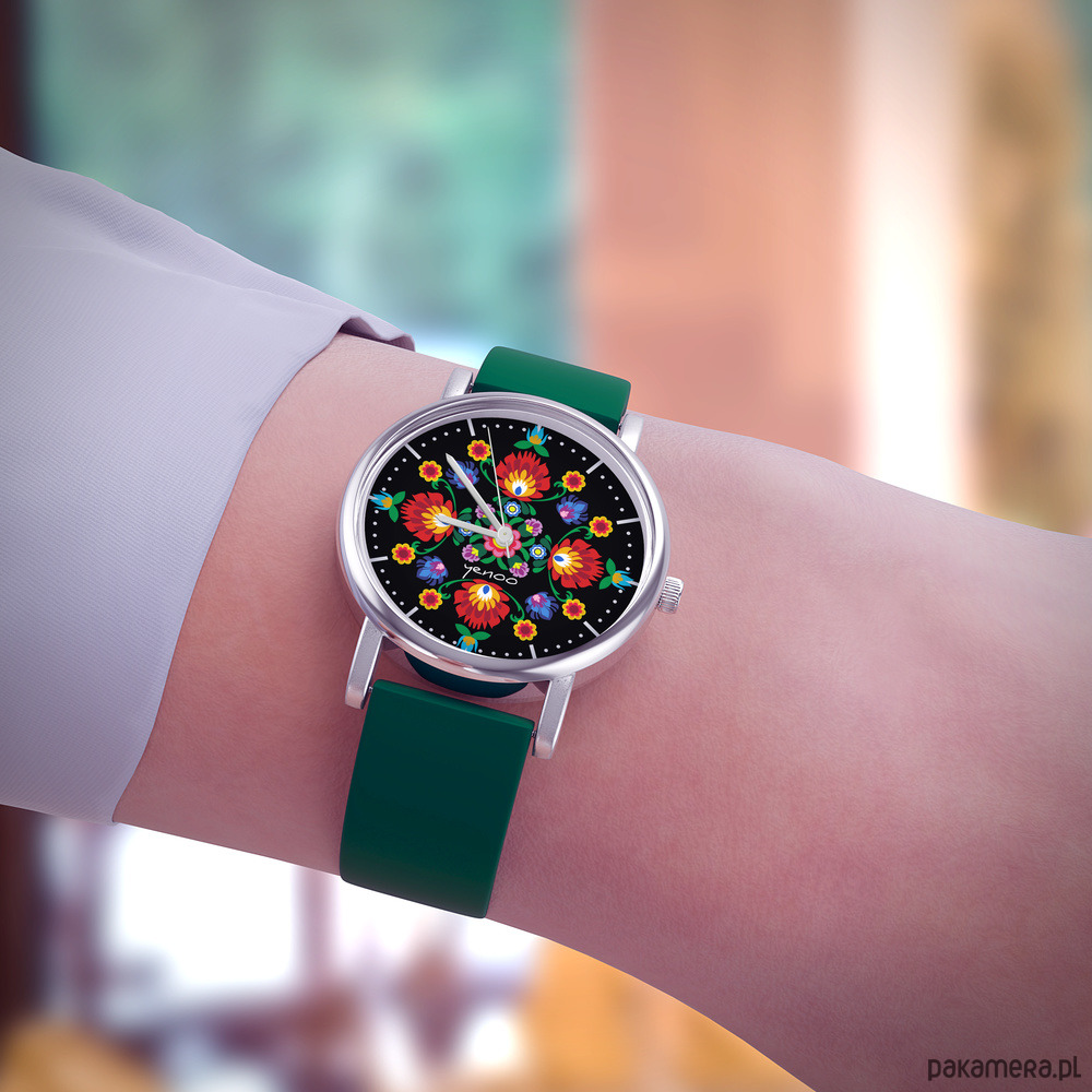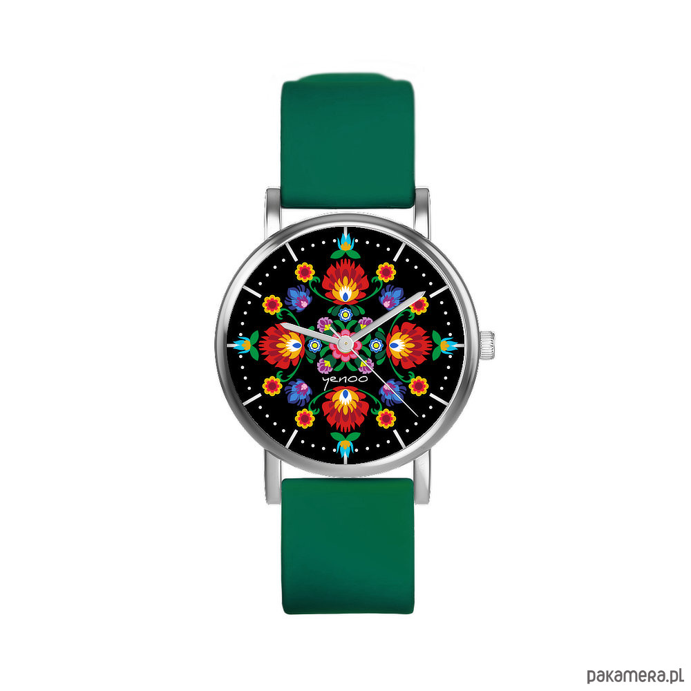Zegarek mały - Mandala folk, czarna - silikonowy, zielony