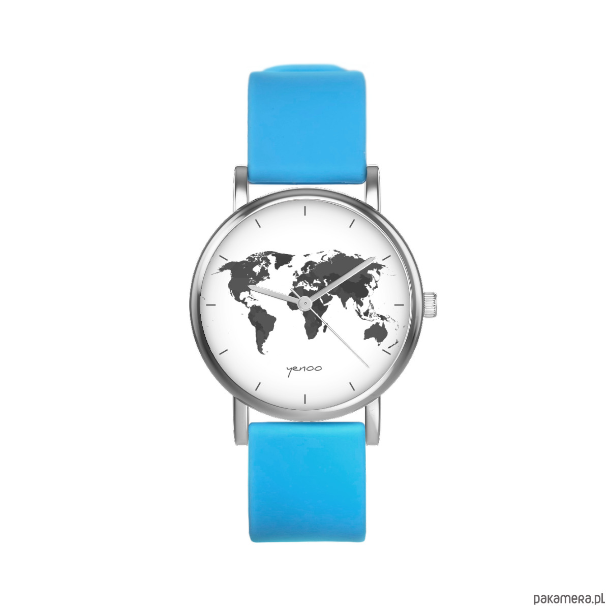 Zegarek mały - Mapa świata - silikonowy, niebieski