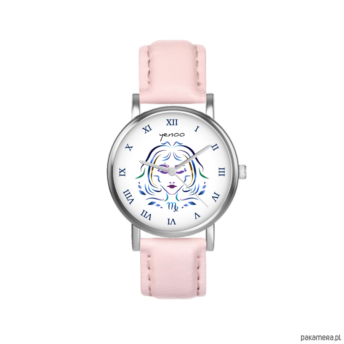 Zegarek mały - Panna - skórzany, pudrowy róż