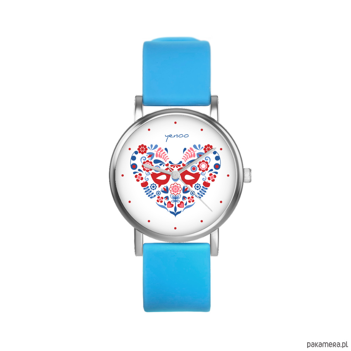 Zegarek mały - Ptaszki folkowe - silikonowy, niebieski