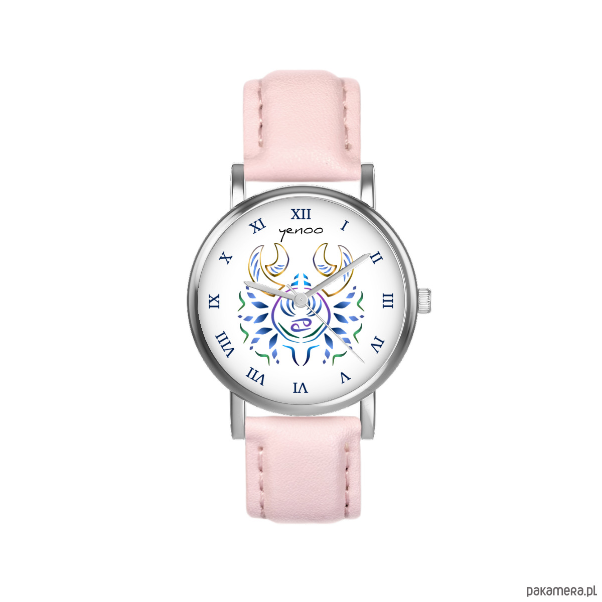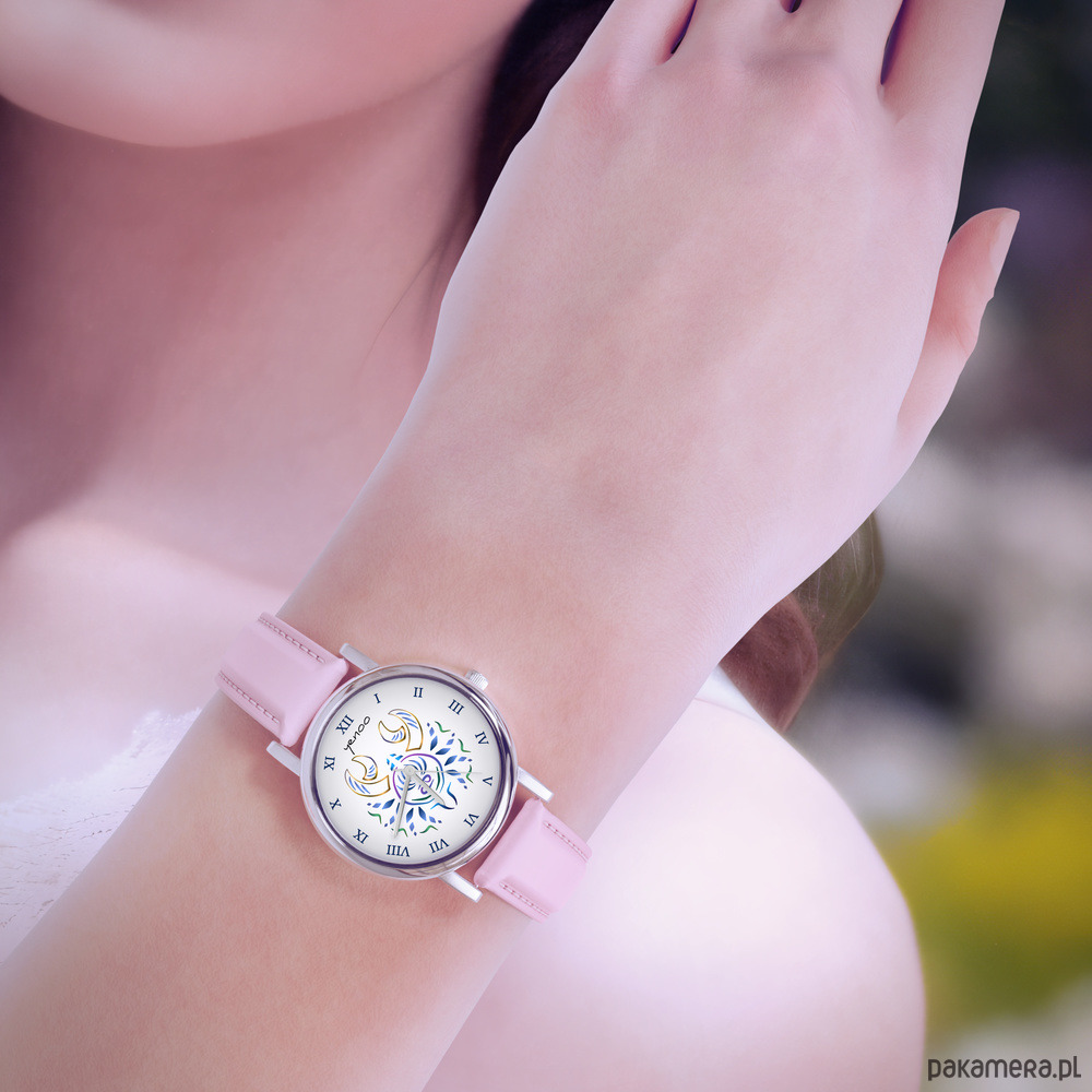 Zegarek mały - Rak - skórzany, pudrowy róż