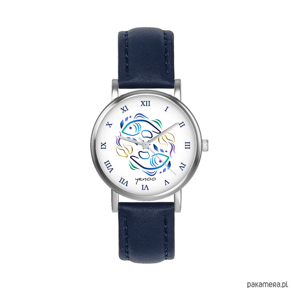 Zegarek mały - Ryby - skórzany, granatowy