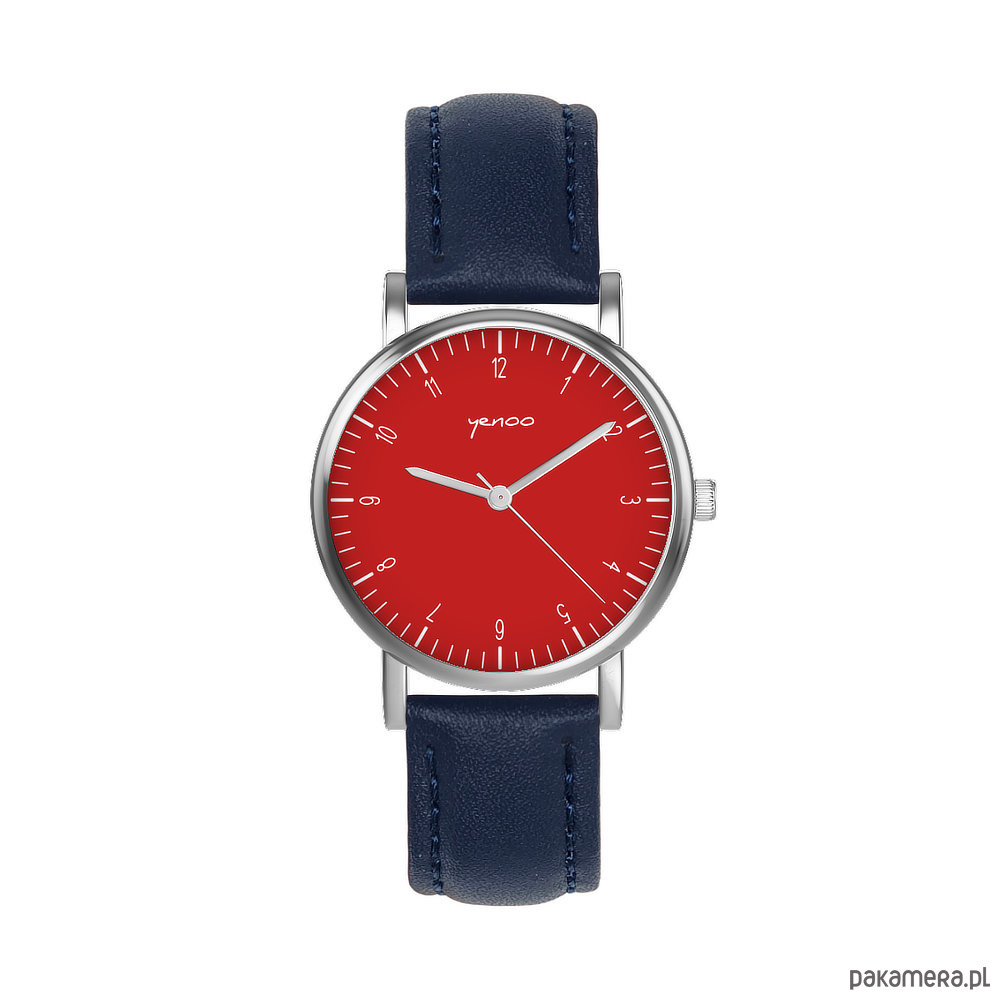 Zegarek mały - Simple czerwony - skórzany, granatowy