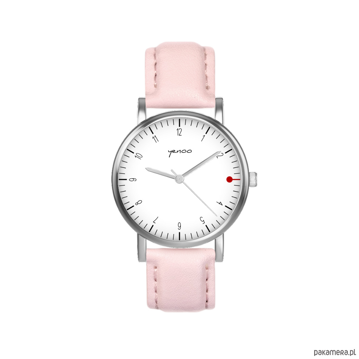 Zegarek mały - Simple elegance - skórzany, pudrowy róż