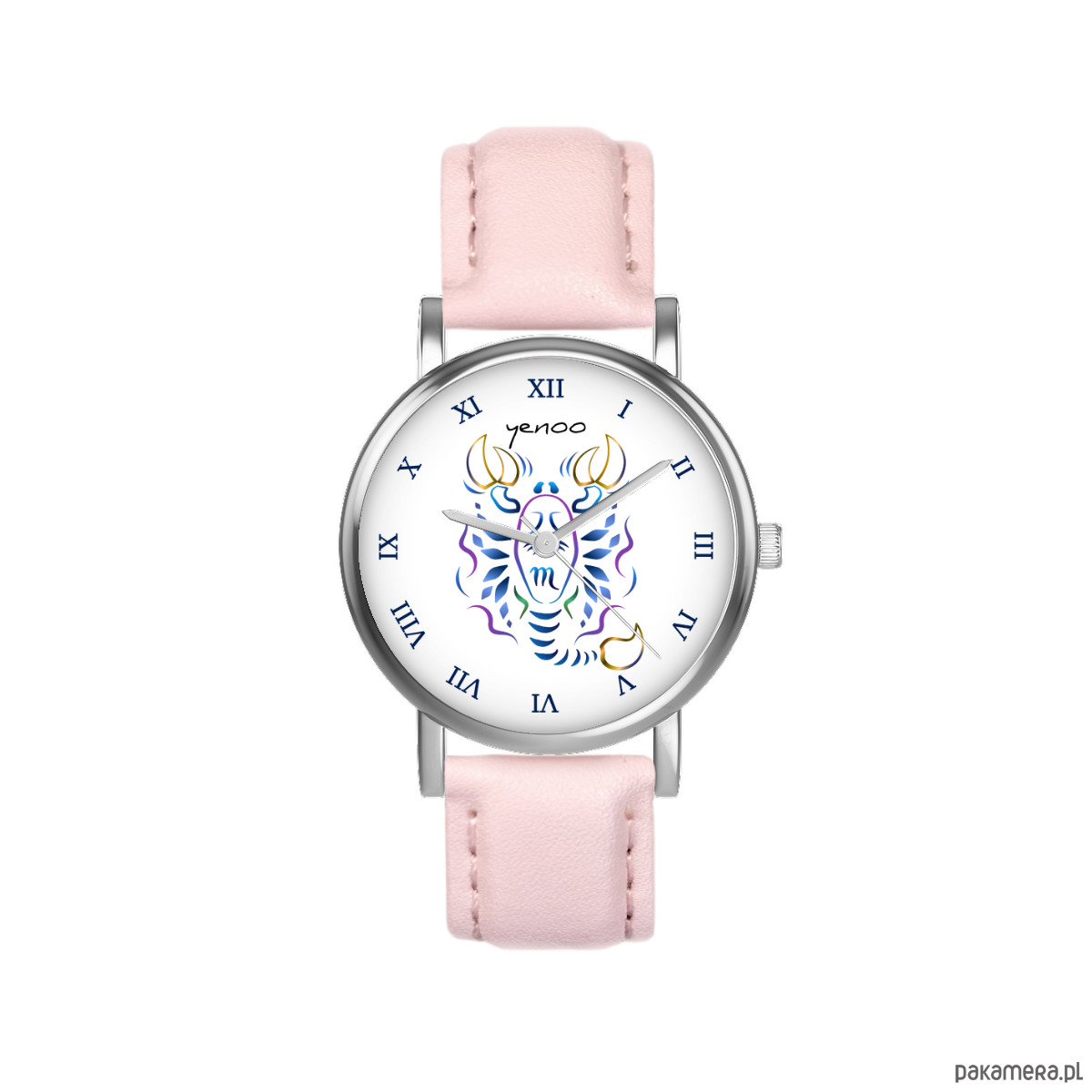 Zegarek mały - Skorpion - skórzany, pudrowy róż