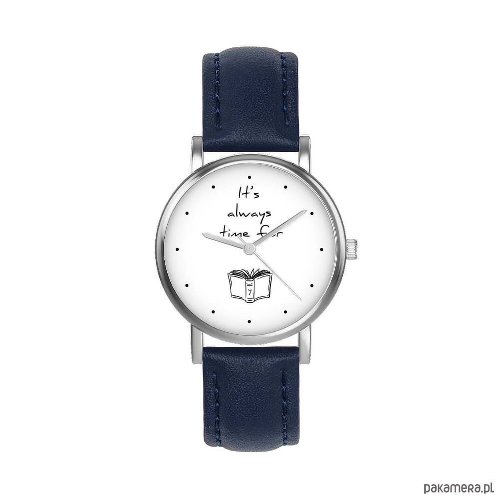 Zegarek mały - Time for book - skórzany, granatowy