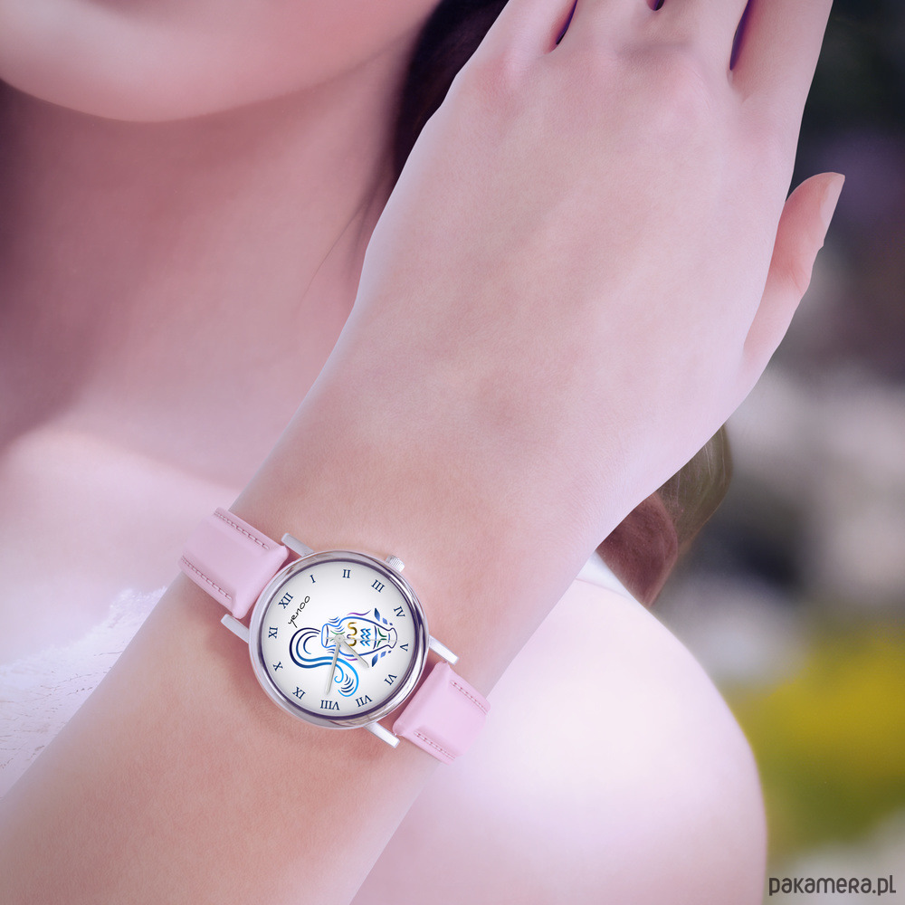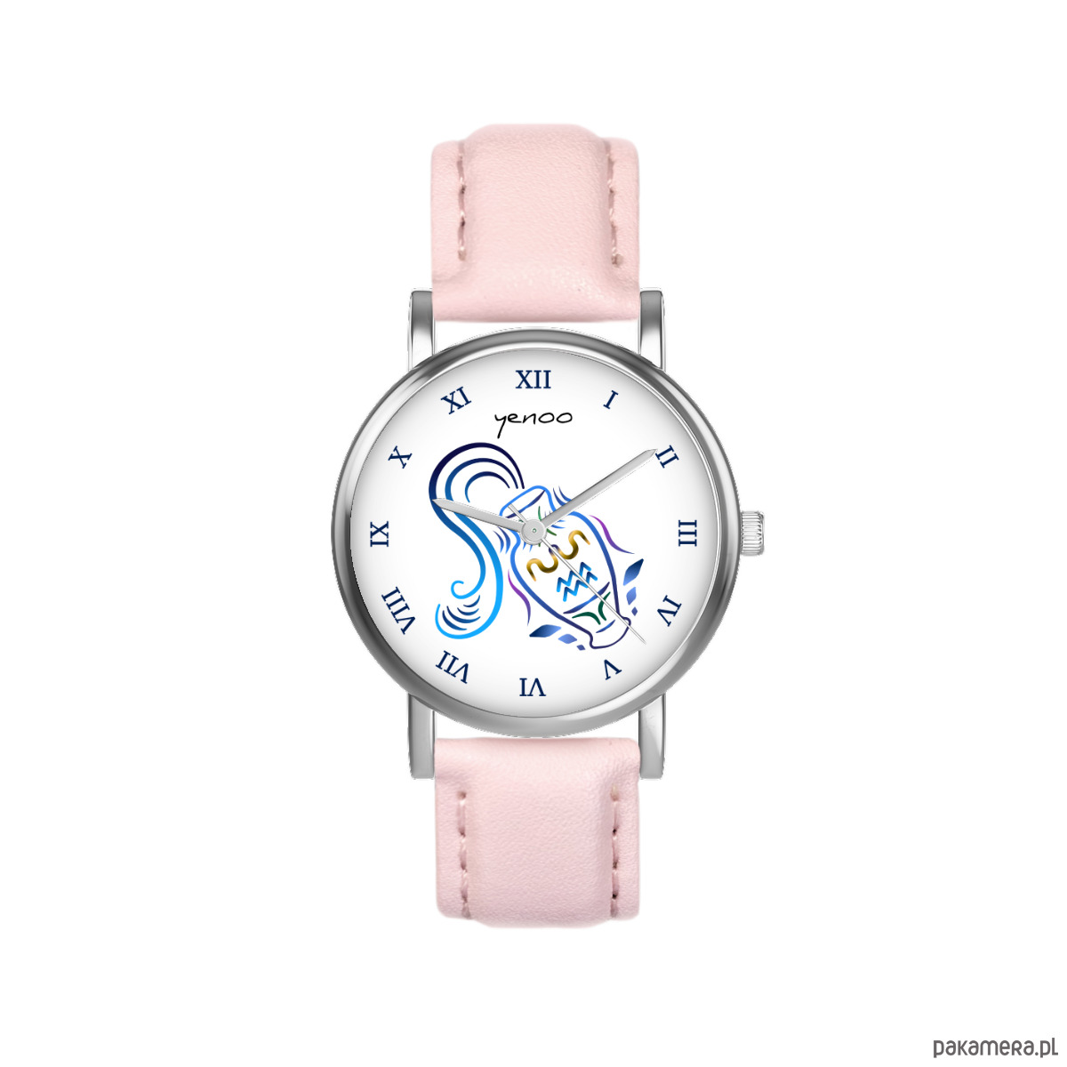 Zegarek mały - Wodnik - skórzany, pudrowy róż