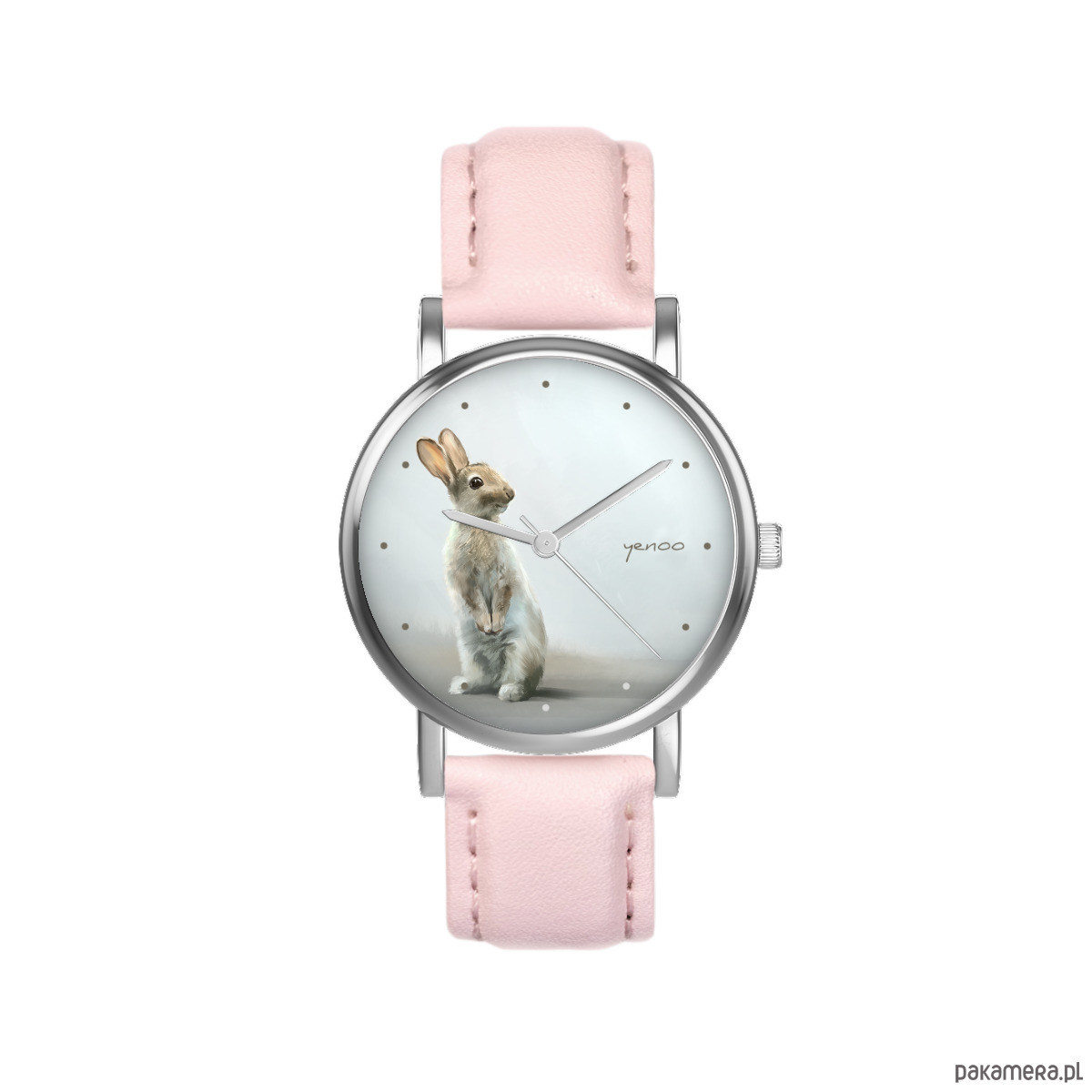 Zegarek mały - Zając - skórzany, pudrowy róż