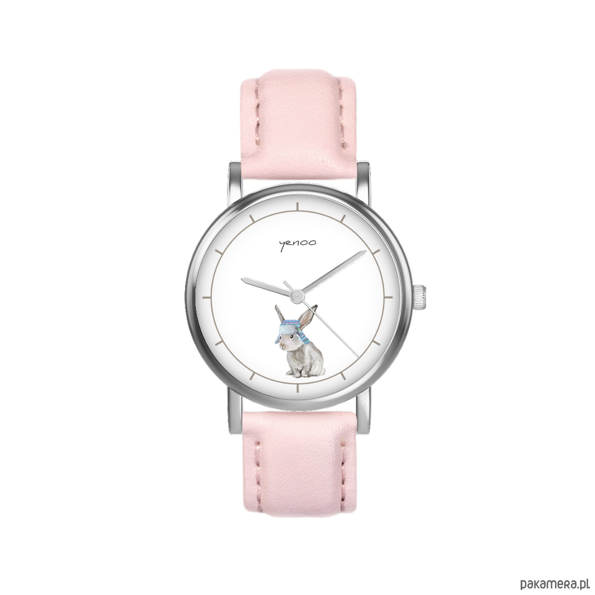 Zegarek mały - Zajączek - skórzany, pudrowy róż