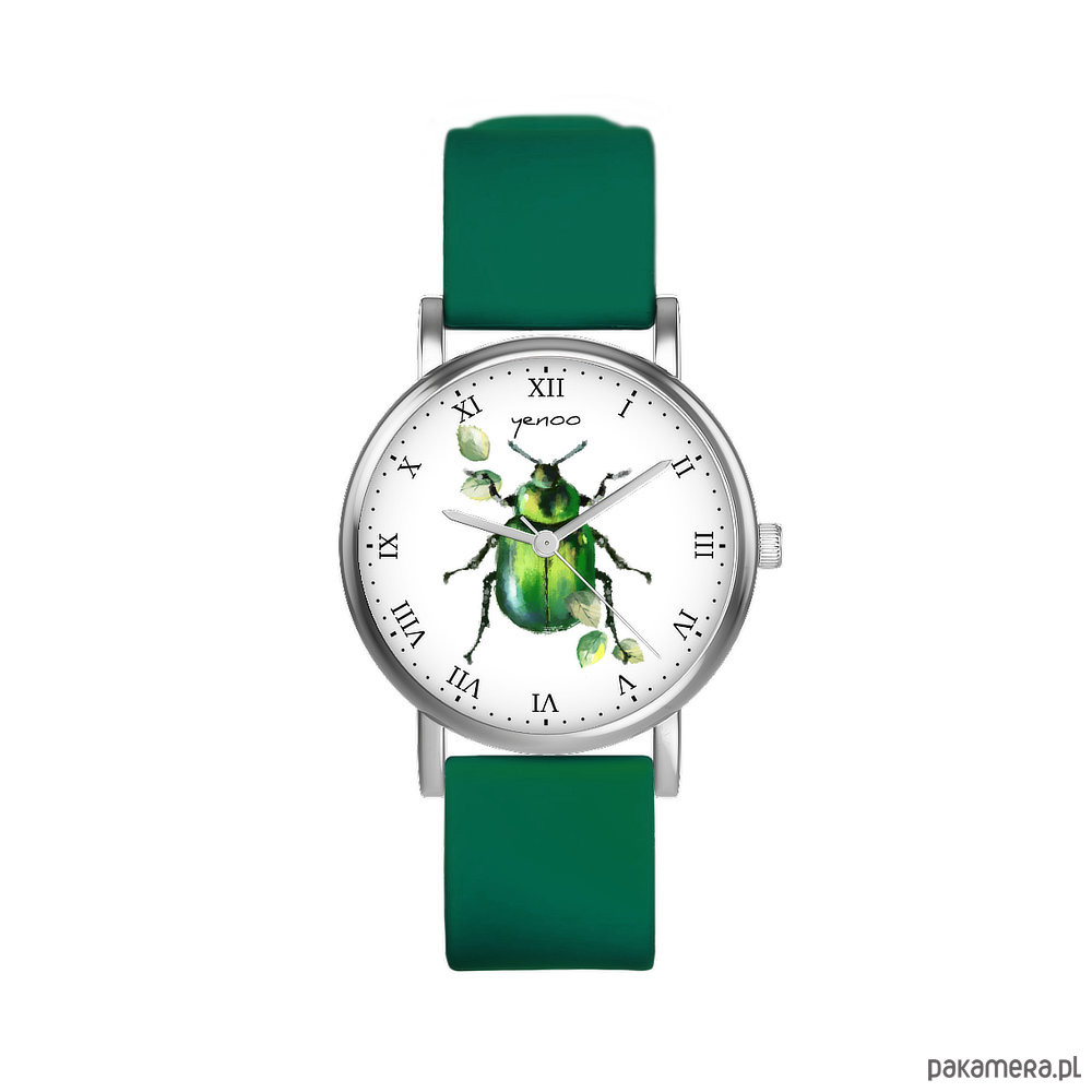 Zegarek mały - Zielony żuczek - silikonowy, zielony