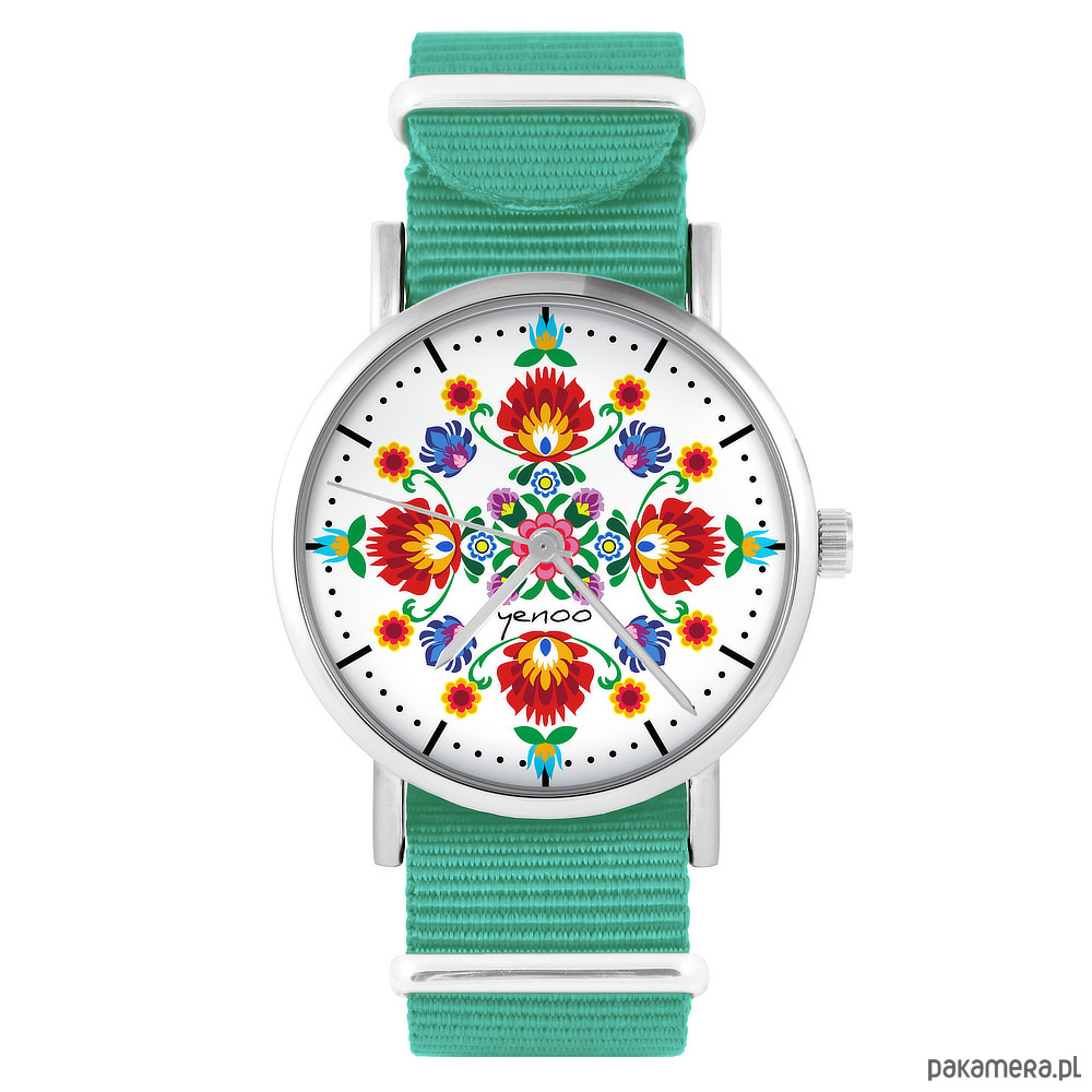 Zegarek - Mandala folkowa - turkusowy, nylonowy