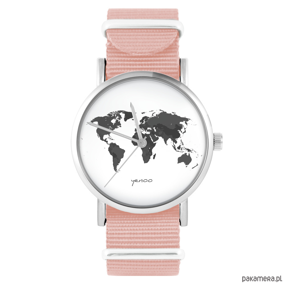 Zegarek - Mapa świata 2 - brzoskwiniowy róż