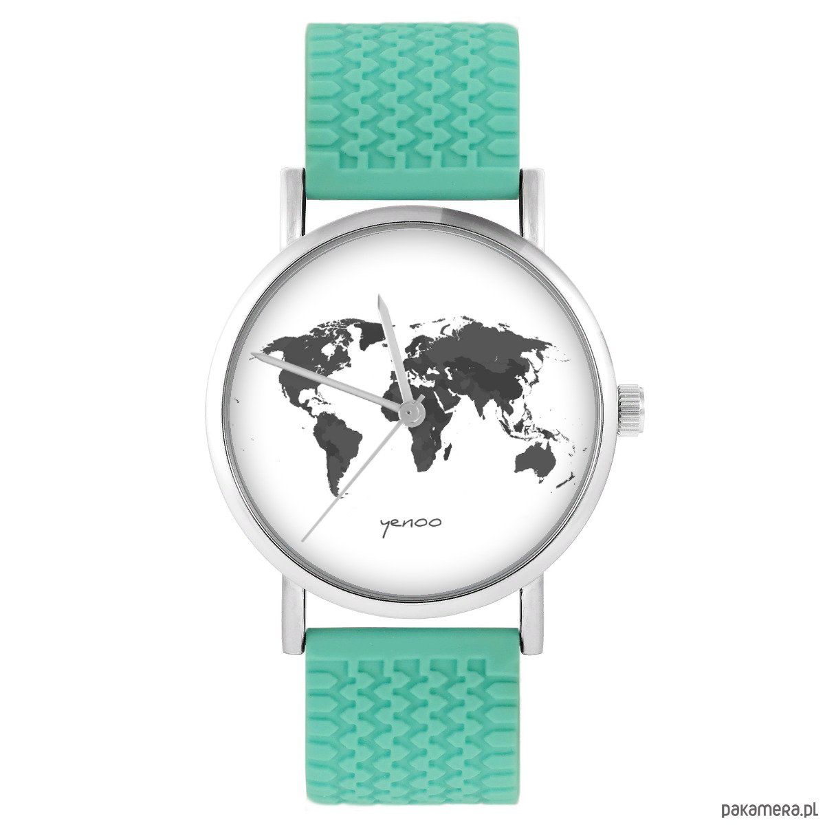Zegarek - Mapa świata - silikonowy, turkus