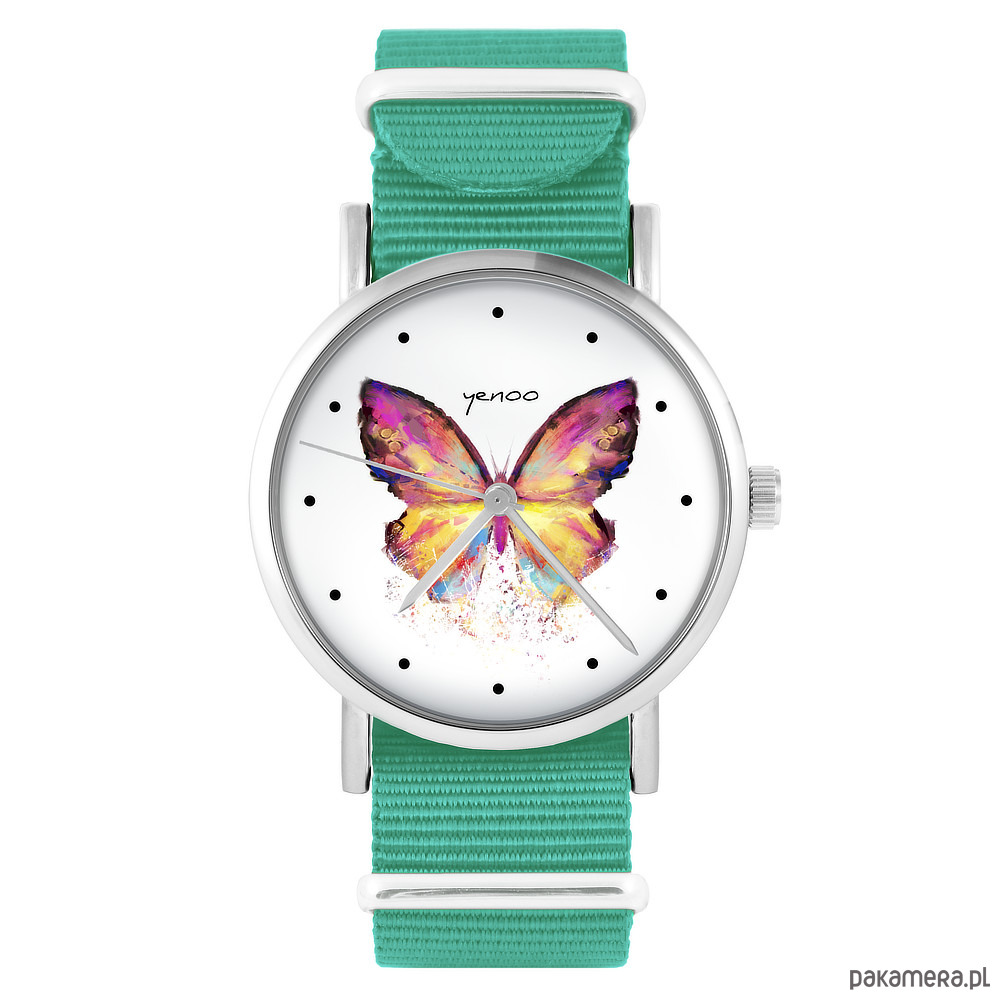 Zegarek - Motyl - turkusowy, nylonowy