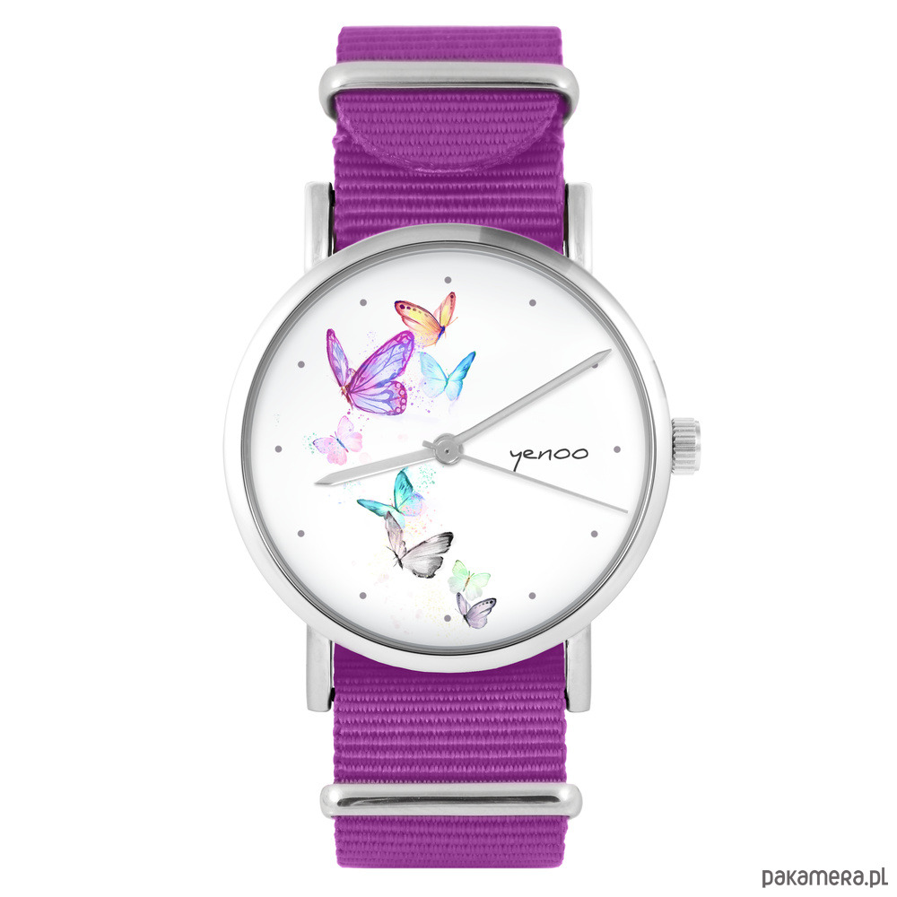 Zegarek - Motyle - amarant, nylonowy