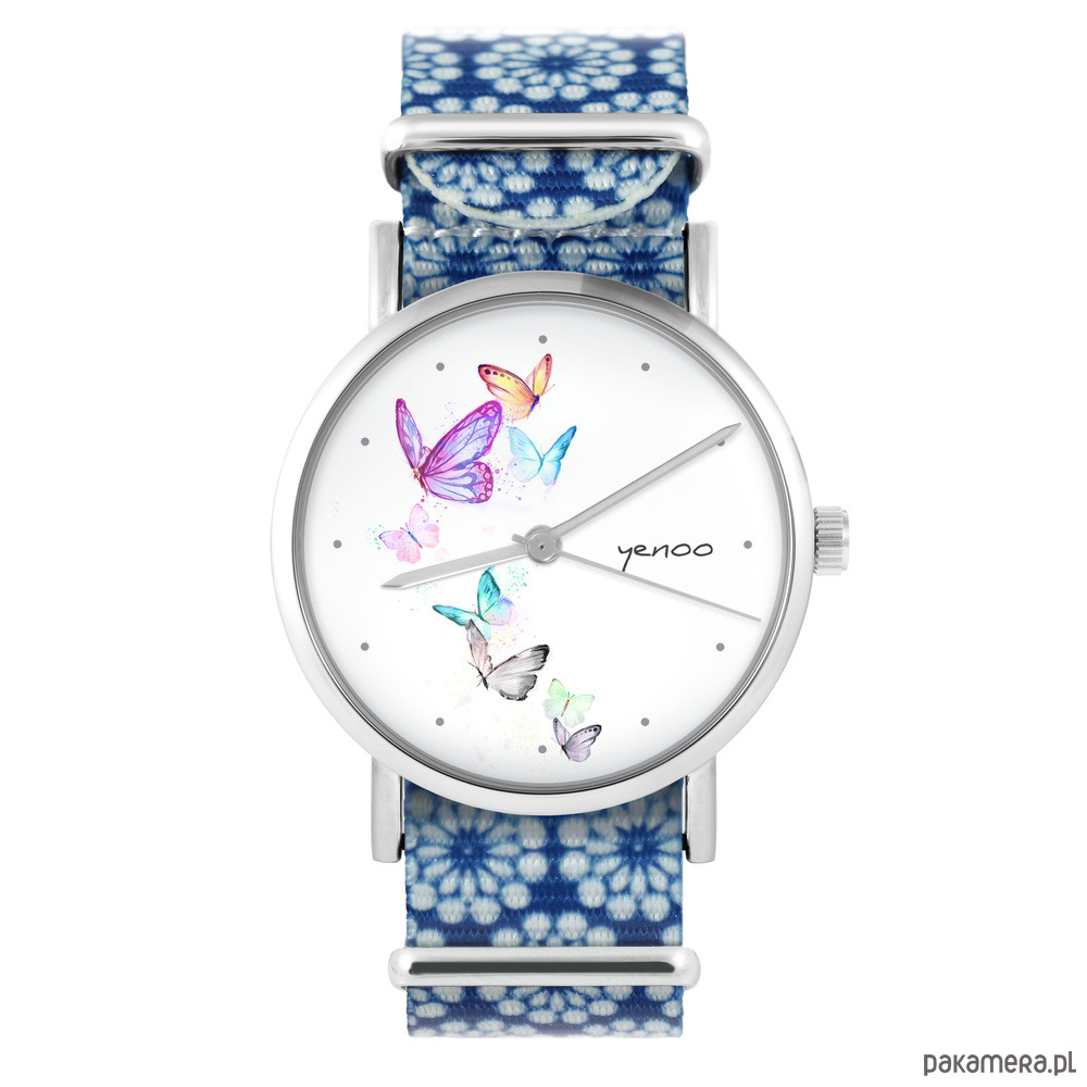 Zegarek - Motyle - niebieski, kwiaty