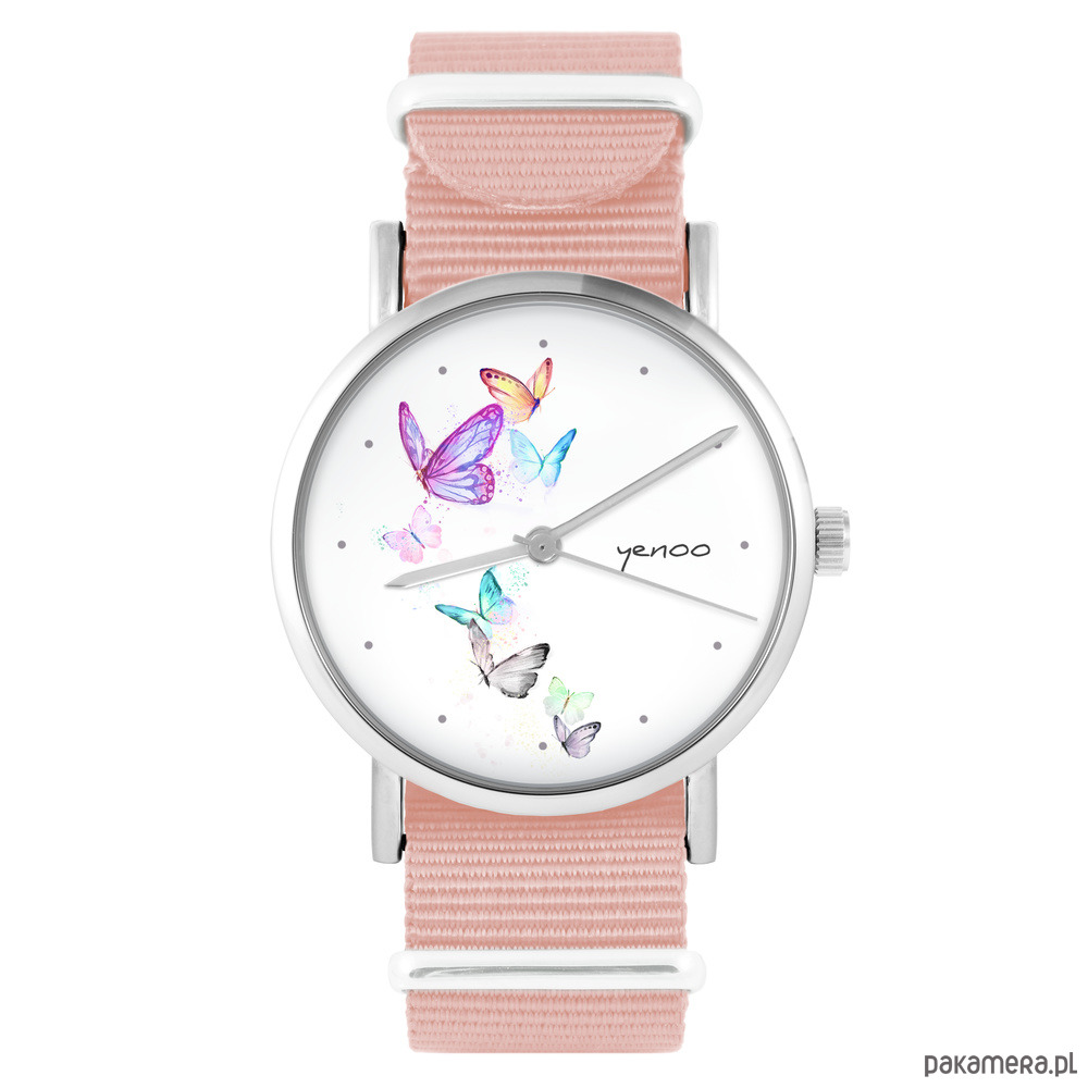 Zegarek - Motyle, oznaczenia - brzoskwiniowy róż