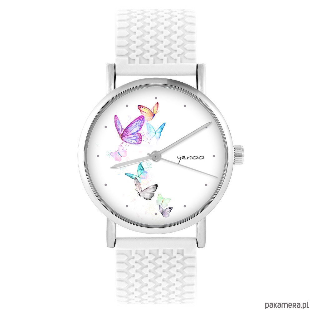 Pasek wykonany jest z silikonu z oryginalnym wytłoczonym wzorem, zapinanie na regulowaną klamrę.