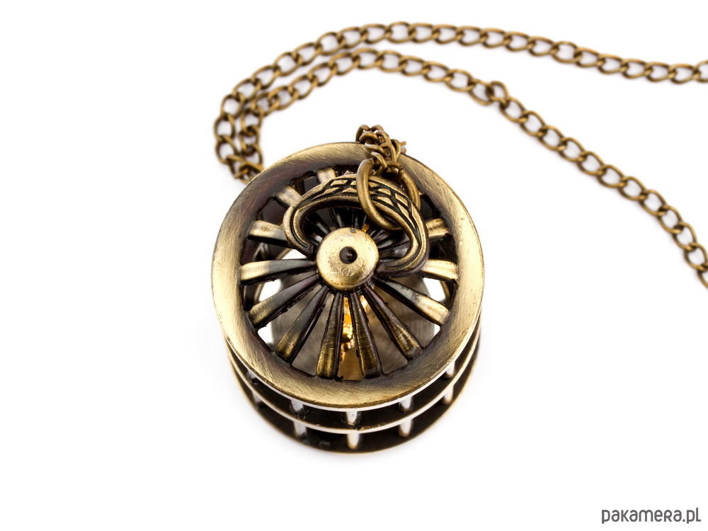 Rewelacyjny model, zdecydowanie topowe wzornictwo i styl. Bardzo modny i oryginalny wzór stanowiący wyjątkową ozdobę do strojów codziennych, jak i wieczorowych. Jest to tajemnicza biżuteria, która przyciąga swoją formę uwagę innych. Klatka z małym ptaszkiem zamkniętym w środku poruszającym się wraz z naszym ruchem, niestety nie umie śpiewać ;) może Tobie uda się go tego nauczyć! Sam zegarek ukryty jest od spodu wisiora i stanowi jego praktyczną część. Mechanizm w zegarku jest kwarcowy zatem zdecydowanie dedykowany dla osób ceniących sobie wygodę.