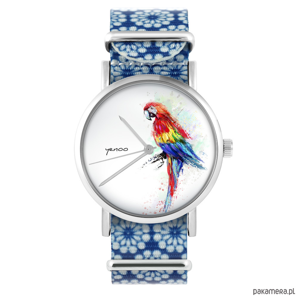 Zegarek - Papuga - niebieski, kwiaty