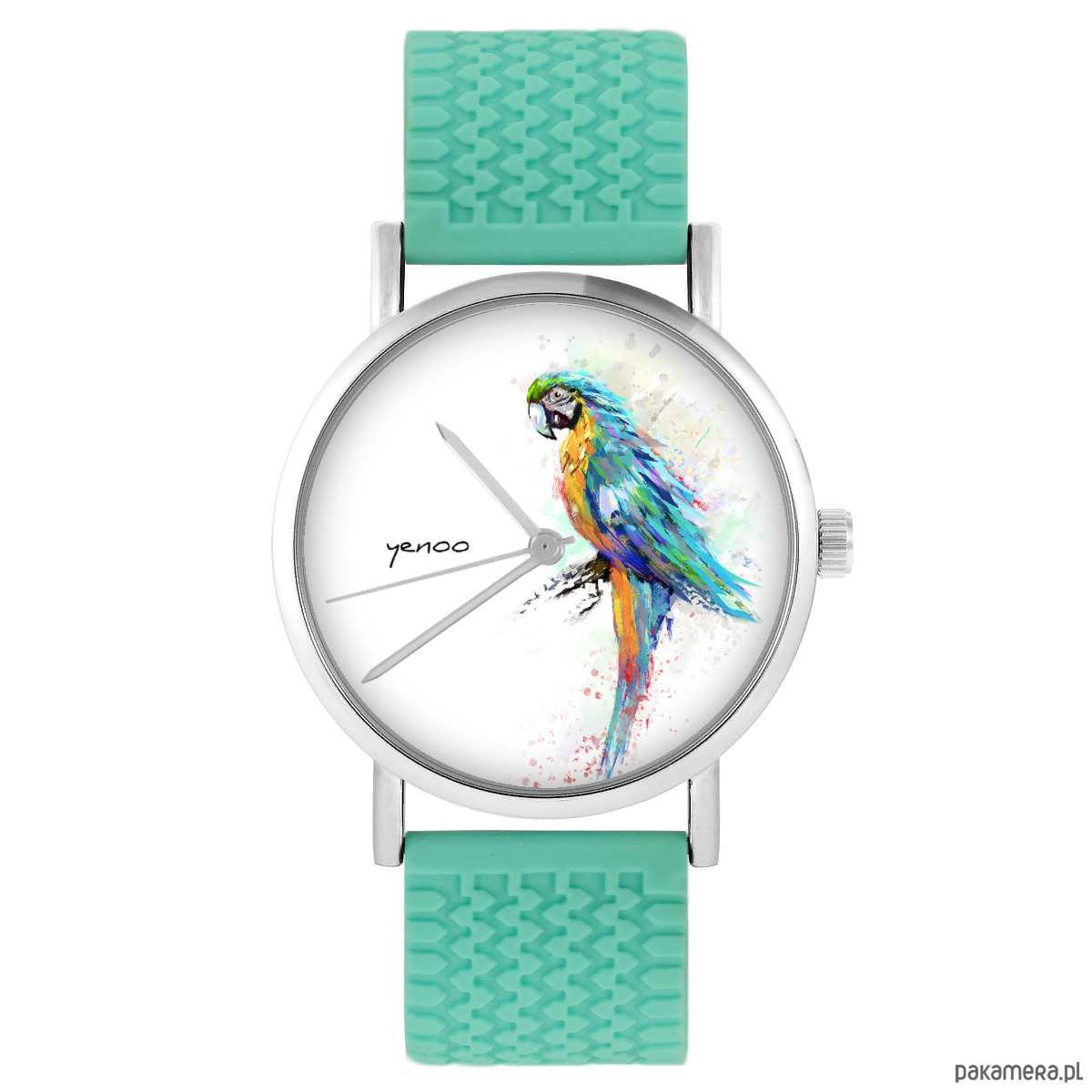 Pasek wykonany jest z silikonu z oryginalnym wytłoczonym wzorem, zapinanie na regulowaną klamrę.