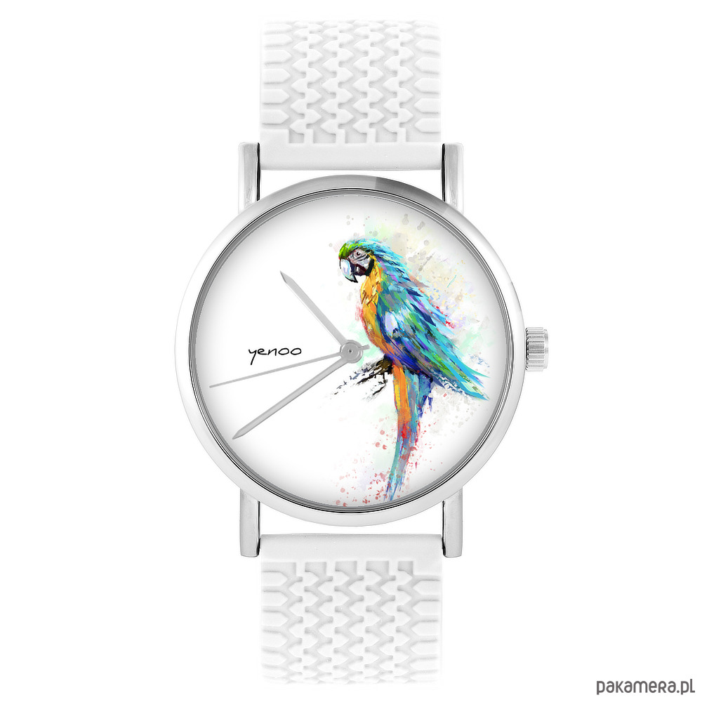 Zegarek - Papuga turkusowa - silikonowy, biały