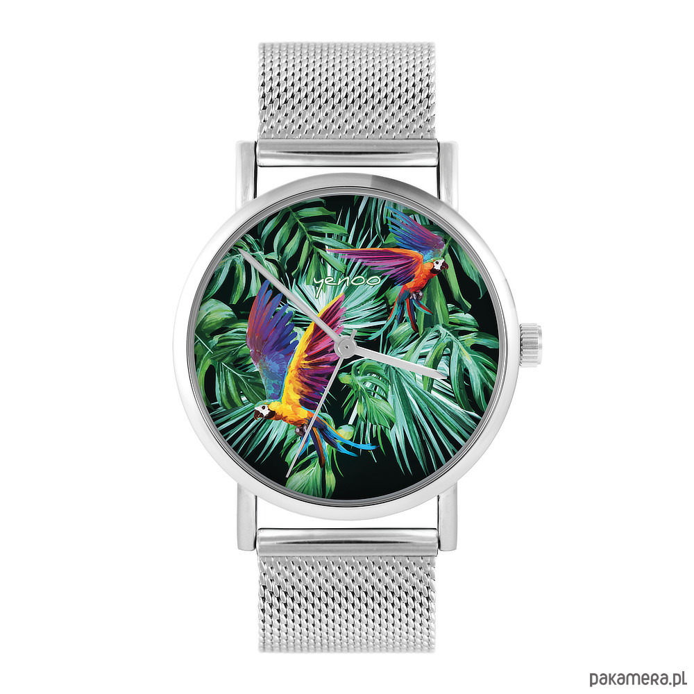 Zegarek - Papugi, tropikalny - bransoleta mesh