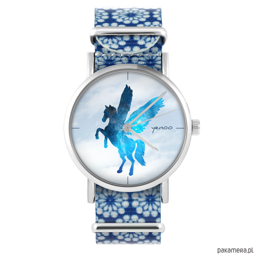 Zegarek - Pegaz - niebieski, kwiaty