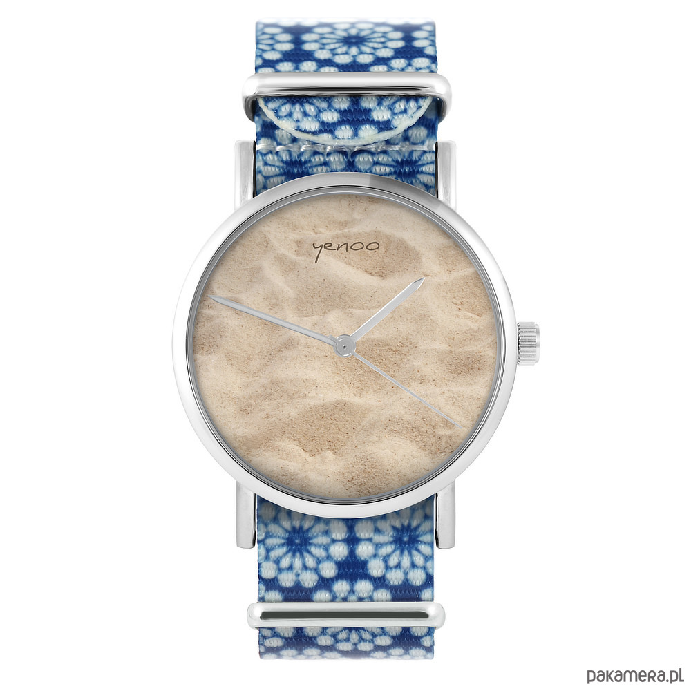 Zegarek - Piasek,plaża - niebieski, kwiaty