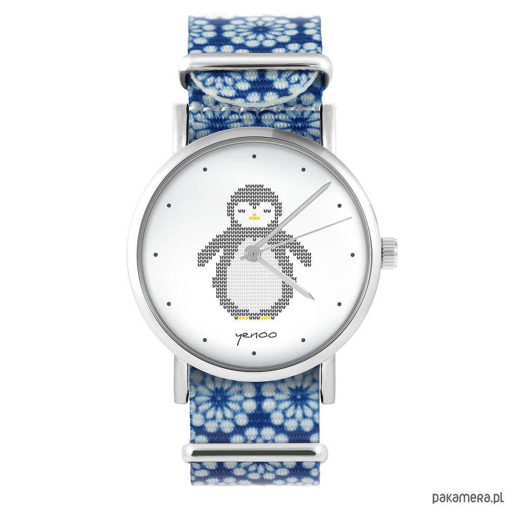 Zegarek - Pingwin - niebieski, kwiaty