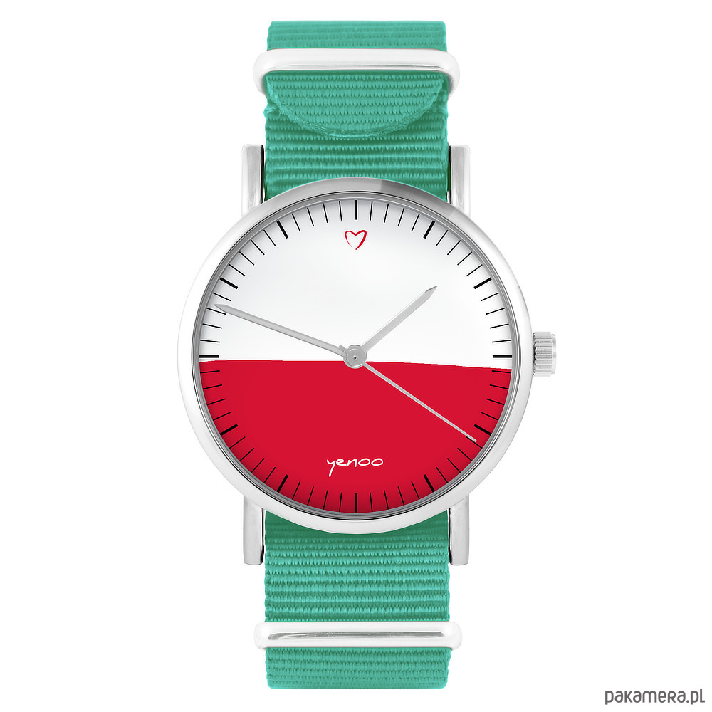 Zegarek - Polska flaga - turkusowy, nylonowy