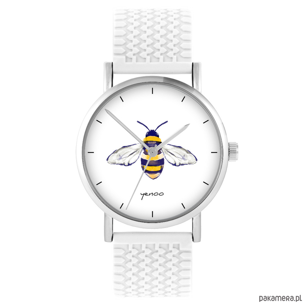 Zegarek - Pszczoła - silikonowy, biały