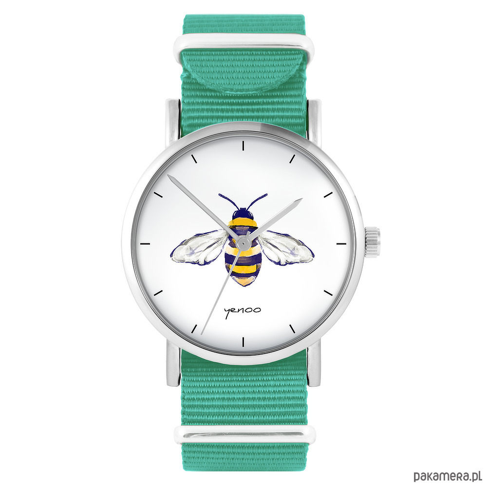 Zegarek - Pszczoła - turkusowy, nylonowy