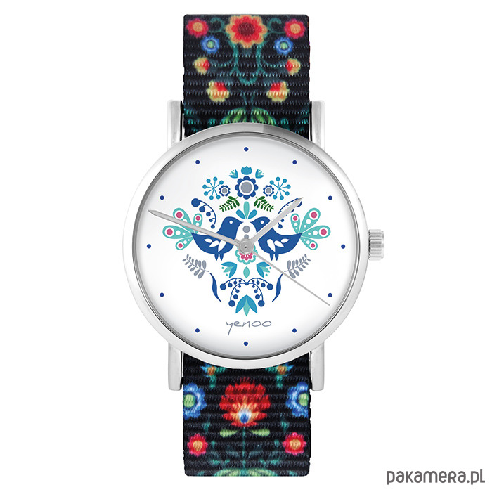 Zegarek - Ptaki folkowe, blue - folk czarny, nato
