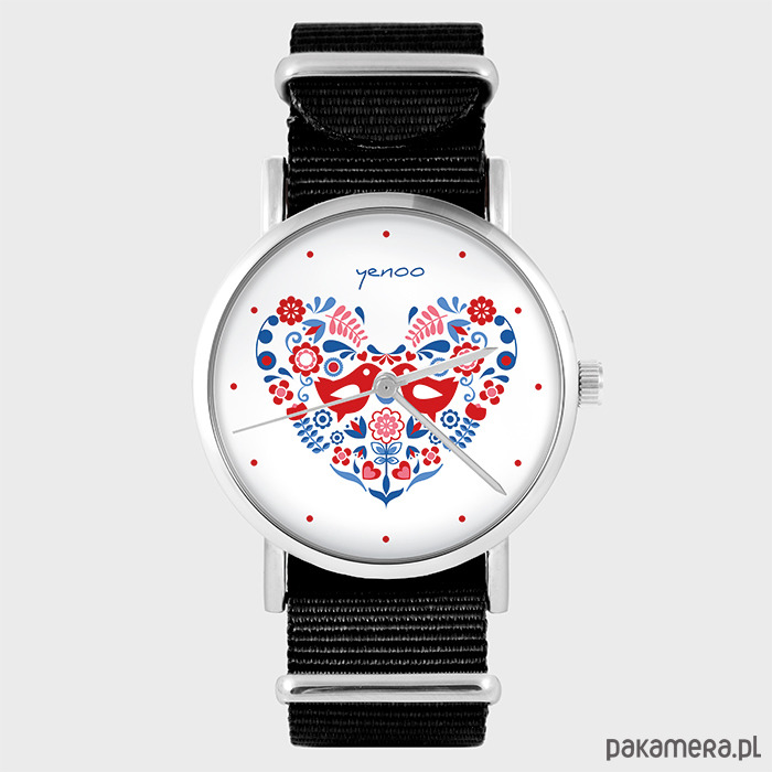 Zegarek - Ptaszki folkowe - czarny, nylonowy