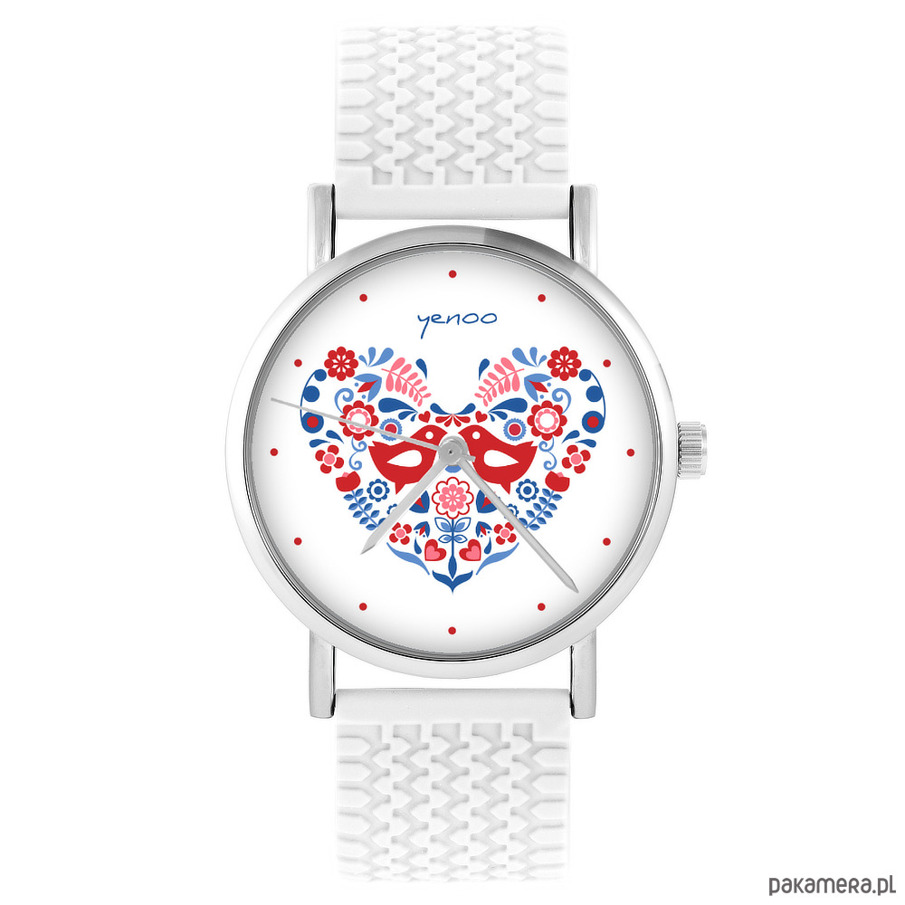Zegarek - Ptaszki folkowe - silikonowy, biały