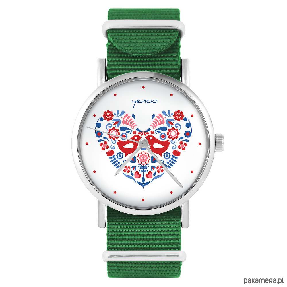Zegarek - Ptaszki folkowe - zielony, nylonowy