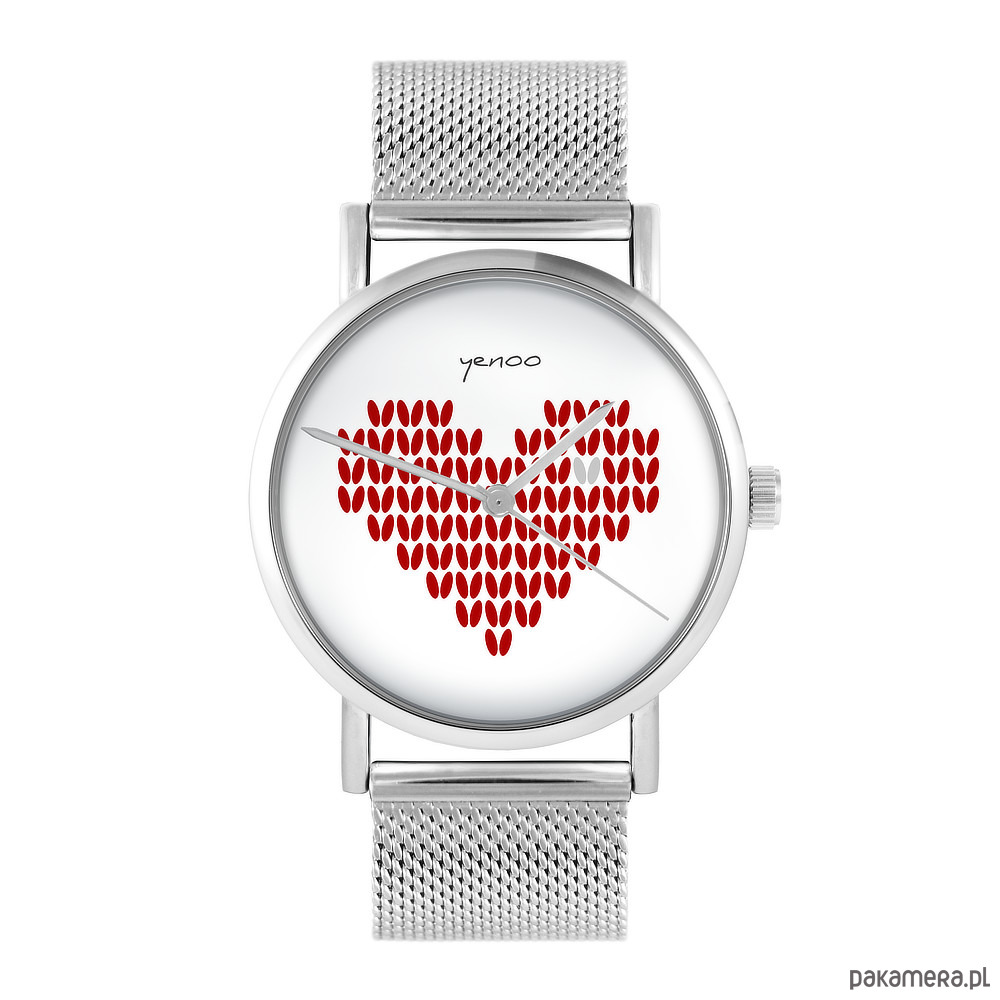 Zegarek - Serce czerwone - bransoleta mesh