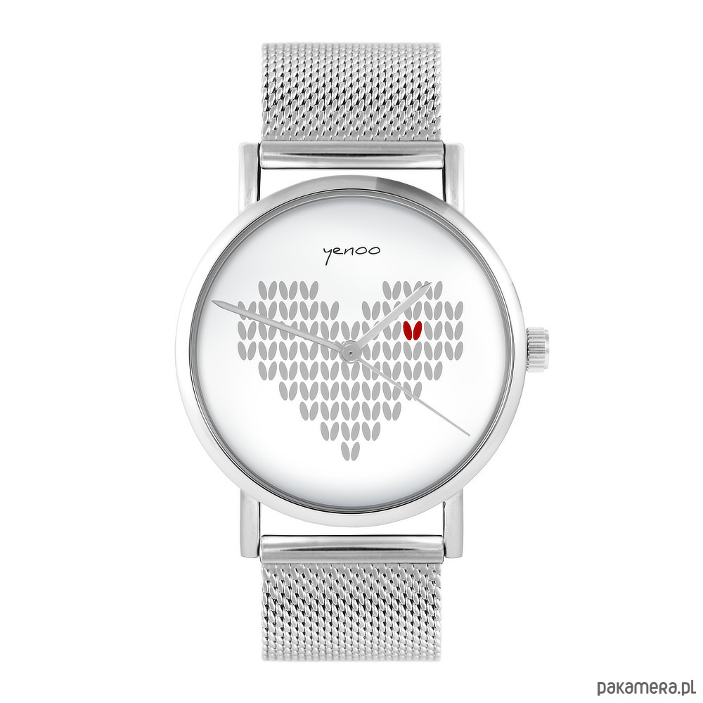 Zegarek - Serce dziergane - bransoleta mesh
