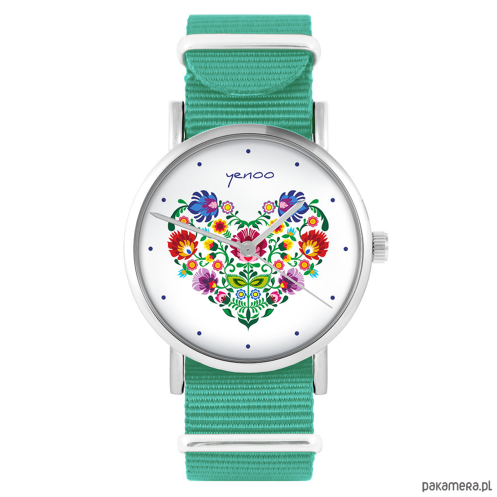 Zegarek - Serce folk - turkusowy, nylonowy