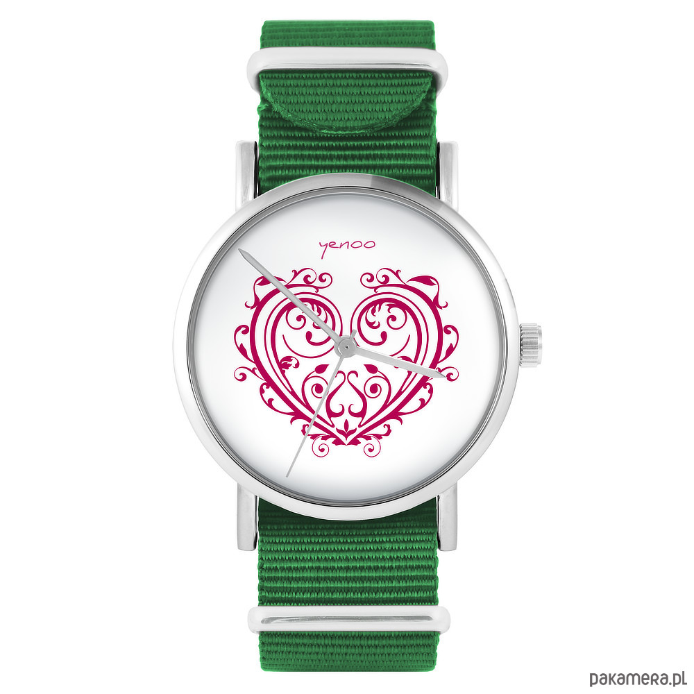 Zegarek - Serce ornamentowe - zielony, nylonowy